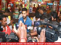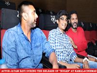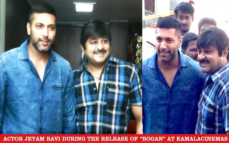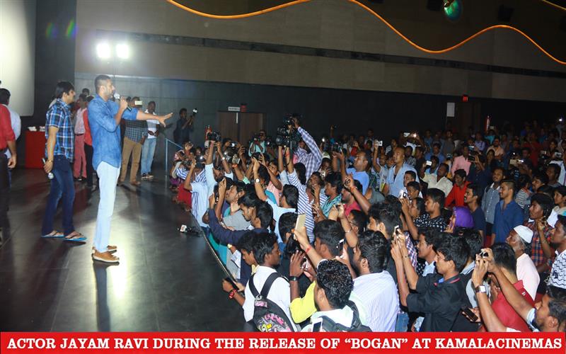 Actor jayam ravi during the release of bogan at kamala cinemas